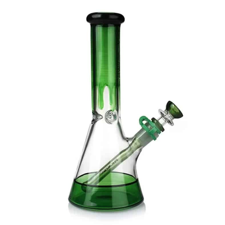The classic beaker base offers enhanced stability and superior water filtration, while the playful color drop accents give it a unique, eye-catching look. Perfect for both beginners and seasoned smokers, it delivers cool, clean hits every time. The removable diffused downstem and herb bowl make it easy to clean and maintain. Buy 10 inch beaker bong