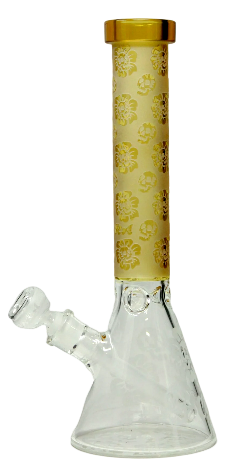 14″ 7mm Deep Engraved Frost Skull Beaker – Yellow